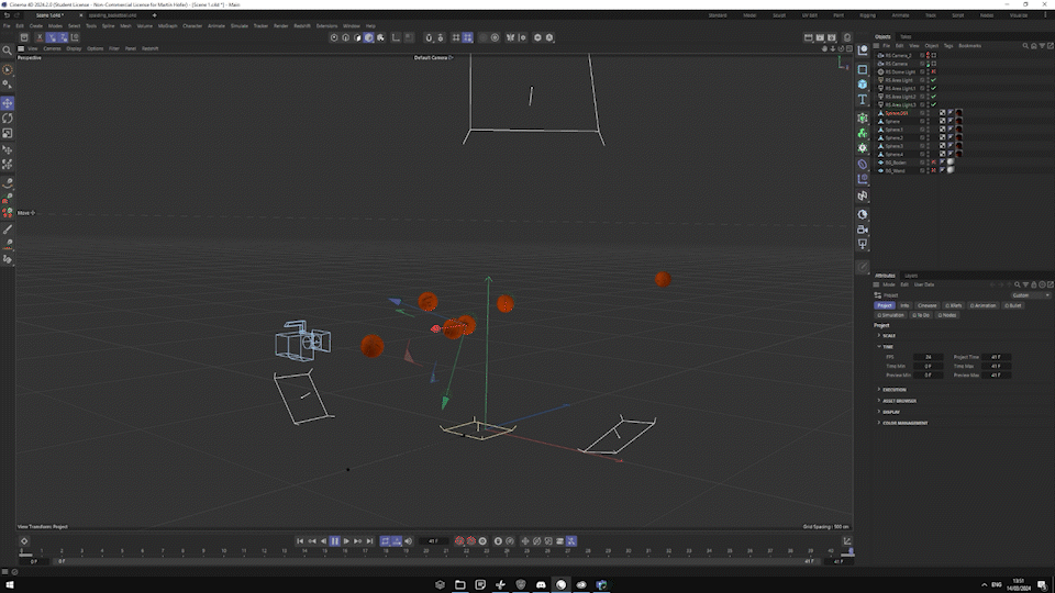 For this 3D scene I’ve set up a total amount of 4 Area Lights. 1x from the bottom, functioning as Back Light, 2x from the sides (Fill Lights) and 1 main source from the top (Key Light). I keyframed the basketballs position and rotation and also the position of the Key & Back Light to bring the scene to life. For the 1st scene I have used a camera with a focal range of 70mm F4 and for the second close-up scene 50mm F1.8. Further camera panning, white balance & exposure tweaks and other visual effects were composited in Adobe After Effects. The original basketball model was downloaded from cgtrader (www.cgtrader.com), uploaded by sabbir12488.